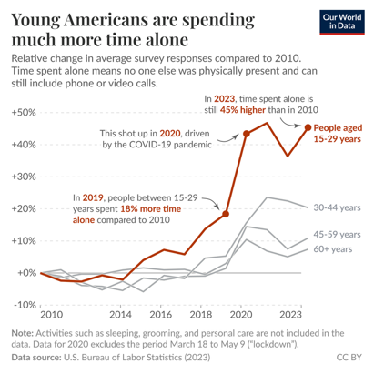 Those aged 15–29 spent about 45% more time alone in 2023 than in 2010. This profound social shift has created a vacuum that digital communities and crowdsourcing platforms are uniquely positioned to fill, offering belonging, purpose, and collective achievement.